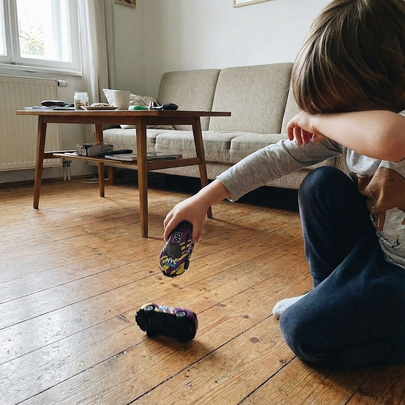 Avtomobilček se vrti, premetava, pristane nazaj na kolesih in nadaljuje vožnjo — otrokom nikoli ne zmanjka idej.